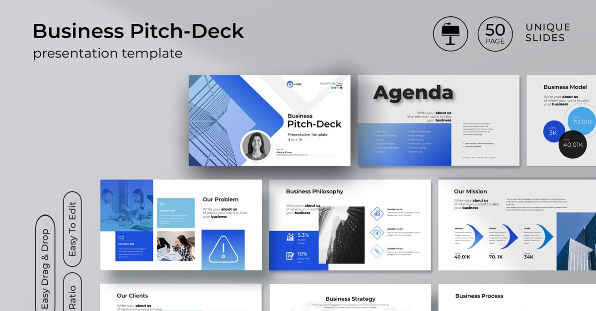 **Business Pitch-Deck Keynote Presentation Template** This Business Pitch-Deck Keynote Template contains 50 useful slides for business plans and processes such as company introduction, market analysis, products and services, competitive strategy, marketing plan, sales method, investing, organization and management team, social media marketing, and many more **FILES INCLUDED** We made this …