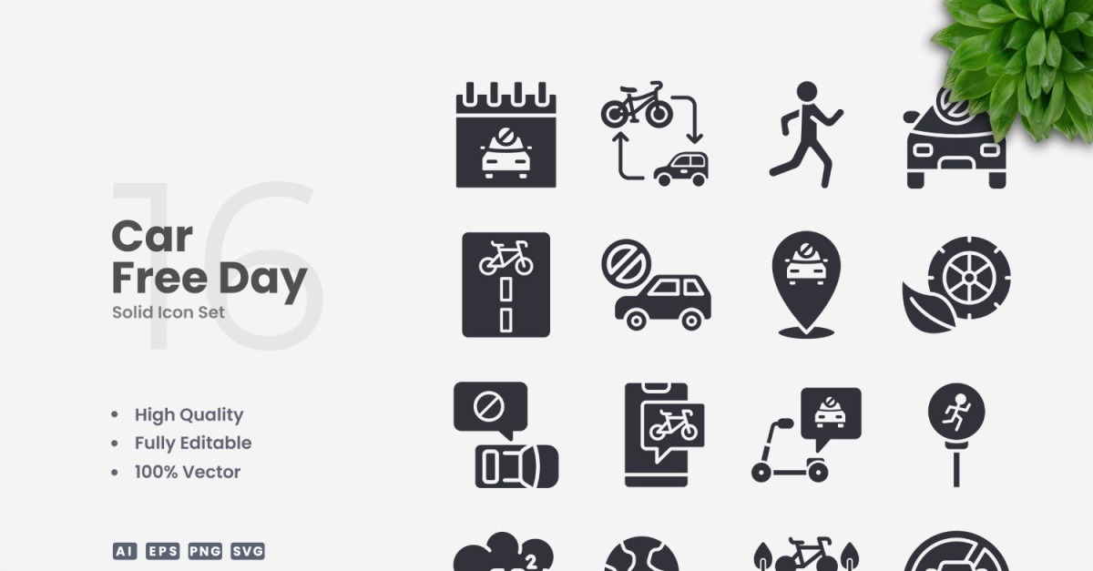 Read More »16 Car Free Day Solid Icons Set #543493
