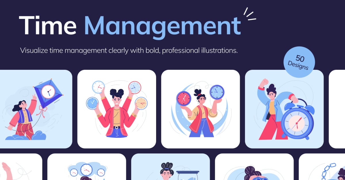 Stay ahead of deadlines with this Time Management Illustration Art Set! Designed in a charming flat style, this collection captures everything from productivity hacks and scheduling symbols to personal balance and time-saving tools. Perfect for planners, apps, presentations, blogs, and more. Whether you’re a designer, educator, or coach, this set …