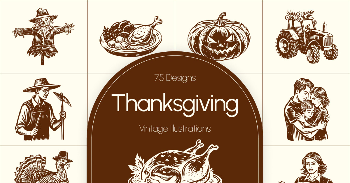 Step into a heartwarming world of autumn nostalgia with this Vintage Thanksgiving Art Set. Each illustration captures the essence of cozy gatherings, golden leaves, and the joy of sharing a meal with loved ones. Designed with a touch of retro charm, this collection brings warmth and personality to any creative …
