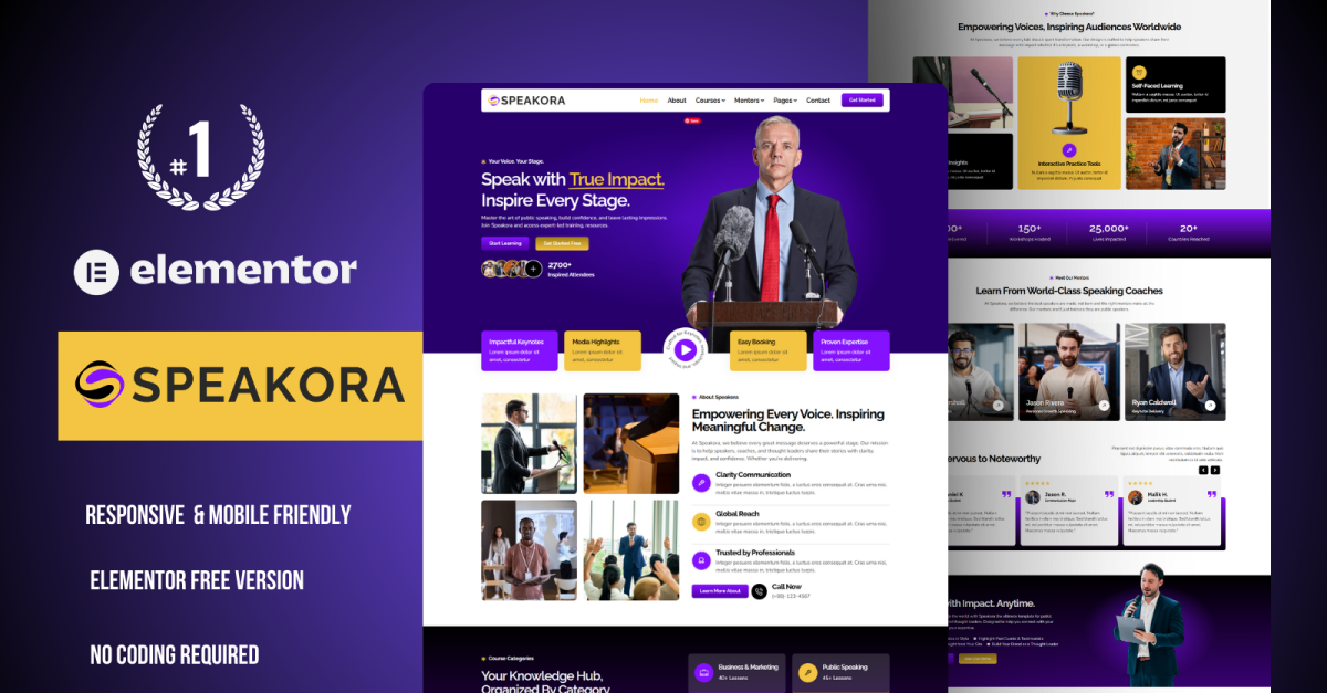 Speakora is a modern Elementor Template Kit designed for public speakers, life coaches, mentors, and motivational trainers who want to inspire and connect with their audience online. With clean layouts, engaging sections, and storytelling-focused design, this kit helps you highlight your expertise, showcase programs, and build credibility with ease. Whether …