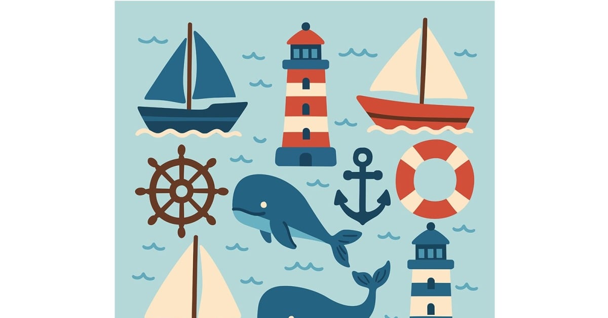 File Included : AI (CS6)EPS10Image 5000 x 5000 (px) **Discover beautiful sea objects clip art and illustration elements perfect for your creative projects. Download unique designs today!** **It includes various elements related to the ocean, such as ships and marine life, created in a cartoon illustration. This illustration could be …