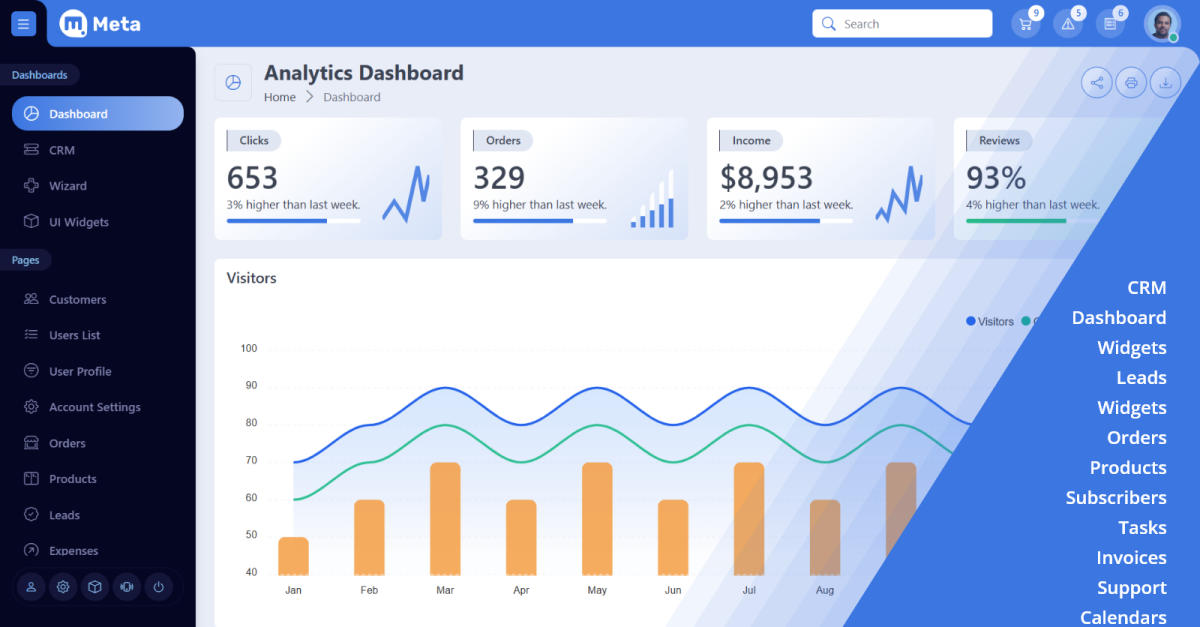 Meta is a sleek and modern Bootstrap 5 Admin Dashboard Template designed for developers seeking a clean and responsive interface for building web applications. Featuring a minimalist design with a focus on usability, Meta includes essential components such as dashboards, charts, tables, forms, and UI elements. Its modular structure allows …